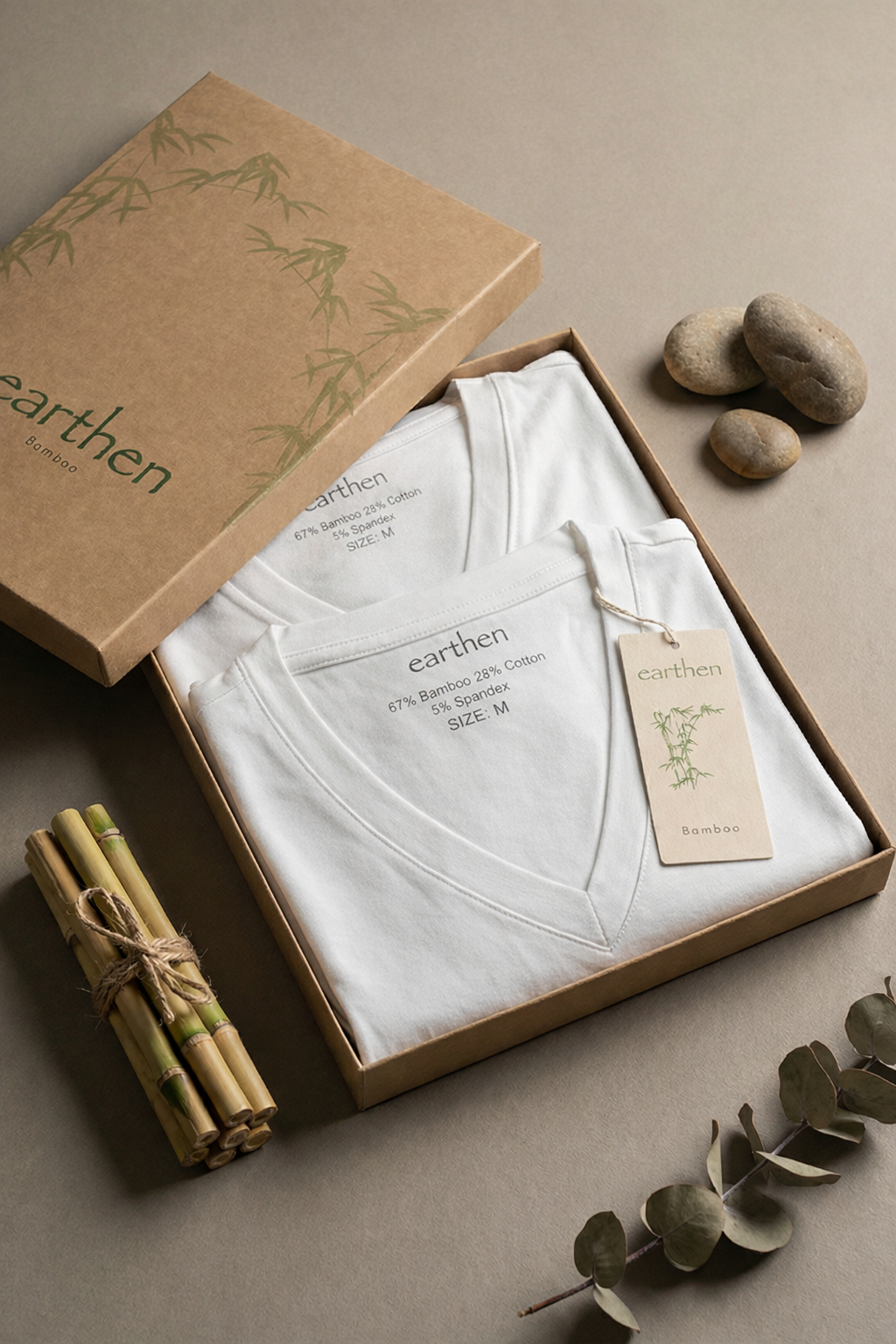 Redefine everyday luxury with Earthen’s Gents V-neck undershirts, made from sustainably sourced bamboo. Each pack includes two impeccably tailored pieces designed for a refined fit that feels as good as it looks. The naturally breathable bamboo fibers regulate temperature, wick away moisture, and resist odor — keeping you effortlessly fresh while treading lightly on the planet. Minimalist in design yet rich in comfort, these undershirts embody conscious craftsmanship for the modern gentleman who values both style and sustainability.